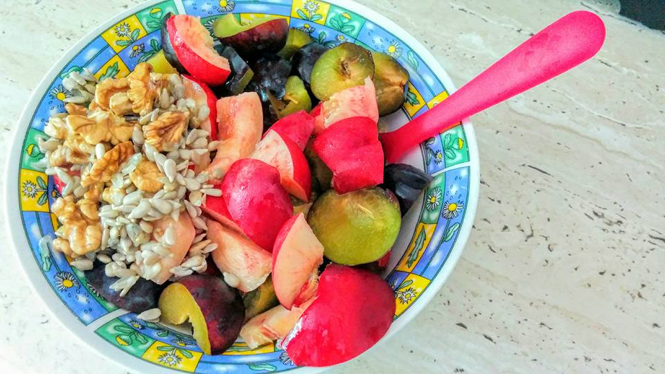3. La mine nu ar manca cel mare nu ar manca fructe dimineata sub nici o forma- noi mancam, cei mari si cel mic. Daca ii dau cereale, paine cu ceva tartinabil ( de obicei unt de arahide cu gem ) mananca, dar fructe NU. Daca i-as da intre masa de dimineata si cea de pranz, nu as avea probleme. Mancati vreodata si fructe in timpul zilei?