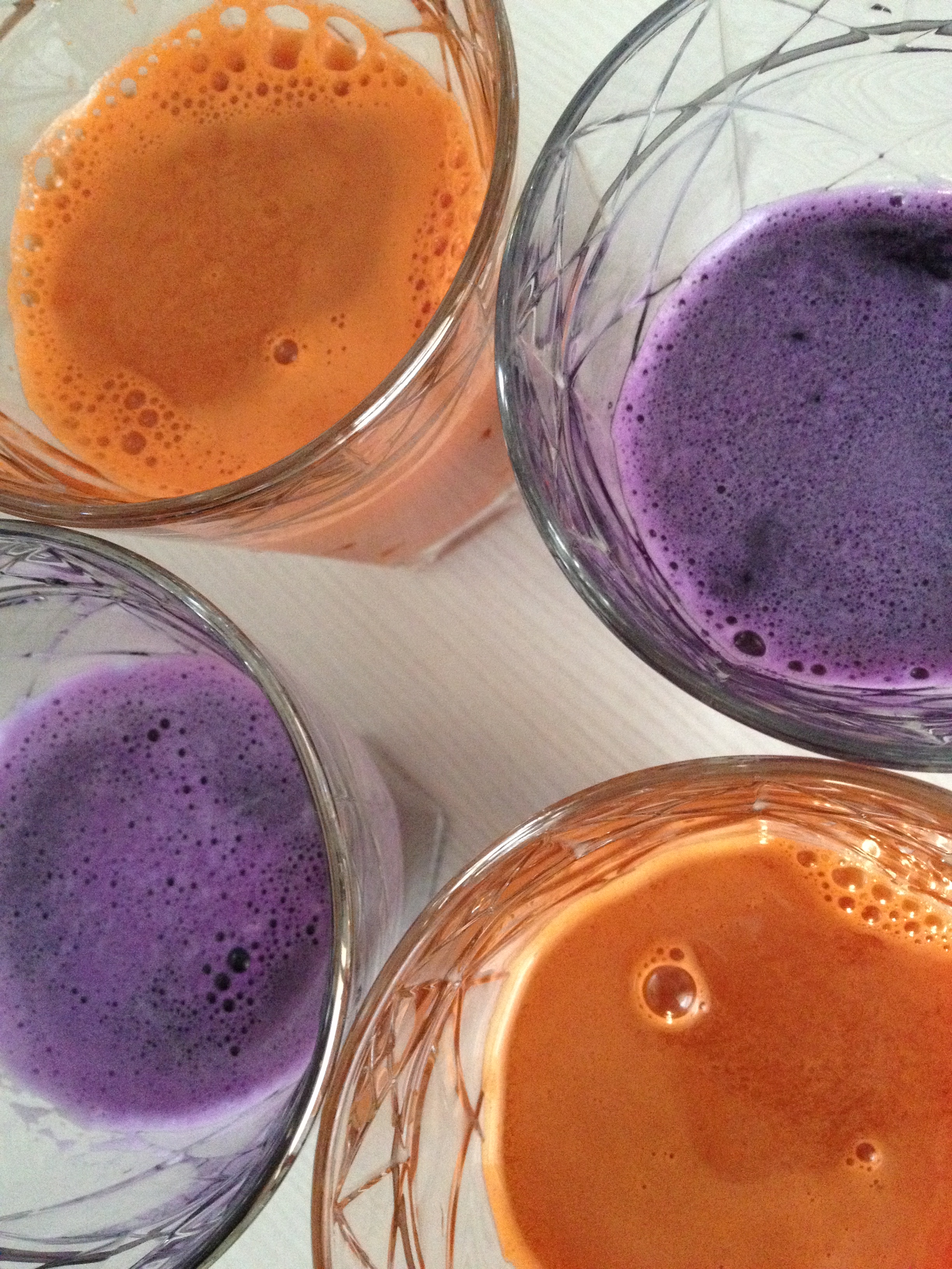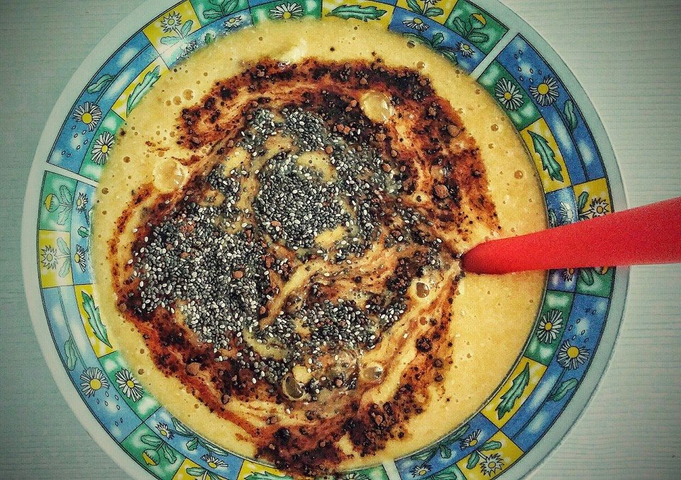 Later edit (2017): ce mult s-a schimbat modul meu de a manca dimineata! De 1 an de zile, micul dejun pentru mine si pentru fete incepe cu suc de morcov, sfecla rosie si telina, chlorella/spirulina si pudra de orz. Apoi, cam dupa 30 de minute, Gia si Eva mananca smoothie cu ceva seminte sau nuci. Ca topping, adaugam o lingurita de carob+cateva cereale de porumb, fara zahar (desi, mai facem si compromisuri). Eu, dupa suc (daca e zi de post cu apa, nici suc nu beau), abia la pranz mananc fructe (am renuntat de multa vreme la smoothie, prefer sa tai bucatele fructele, in care pun si un pic de pudra de carob si cateva nuci sau seminte, rehidratate). Deci, pentru mine, cu mici exceptii, micul dejun e doar lichid. Si ce bine e! 🙂