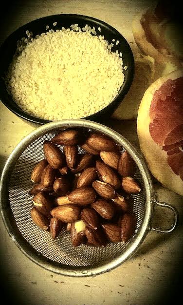 Dimineata, setoasele seminte si cereale au inghitit cam toata apa pusa de cu seara. Ai sa observi ca cele mai multe seminte incoltesc peste noapte, fiindca prin hidratare, invie. La propriu! Spre exemplu, migdalele fac un mic muguras in varf, iar coaja lor o poate desprinde si un copil mic (Eva face asta de la doi anisori :-)). Gustul e complet schimbat, sunt atat de dulci, moi si aromate! Nuca uscata, daca e pusa la hidratat, se transforma in nuca noua! Coaja se curata usor, iar nuca e suculenta, moale si buuuuna. Nu e minunata inteligenta naturii?