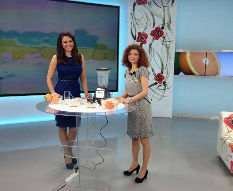 A fost cu totul inedit pentru mine sa ma aflu intr-un platou de filmare, intr-o cabina de machiaj, in mijlocul unei echipe de filmare, cu tot ce presupune ea, inclusiv emotii. 🙂 Dupa prezentare, Alexandra Pacuraru, careia ii multumesc mult pentru ca m-a chemat alaturi de ea la editia a treia a emisiunii, a devorat un bol cu smoothie cat ai zice…chia. 🙂 …Si umbla vorba ca si colegii Alexandrei (care au mai apucat) au fost incantati de piureul auriu de citrice! 🙂