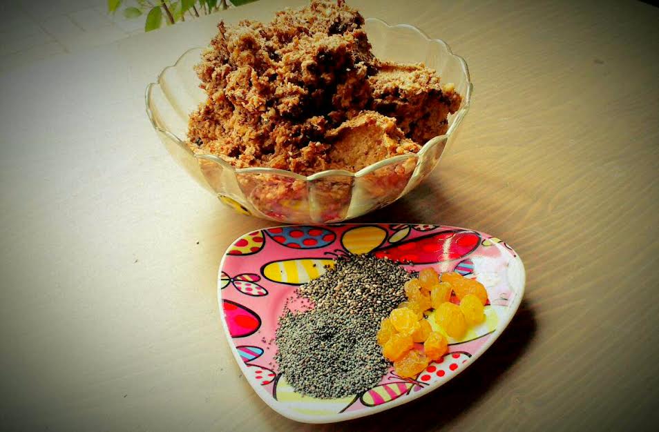 Mod de preparare: intai am macinat nuca in blender, dar nu am maruntit-o chiar de tot, ca biscuitele sa fie putin crocant. Am pus de-o parte nuca si am blenduit bine restul ingredientelor. Cand s-au facut ca o pasta, intr-un castron am amestecat nuca cu pasta de stafide si migdale, pana s-au imprietenit bine.