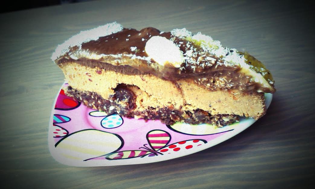 Cum am preparat tortul: am macinat in blender migdalele, dar nu pana s-au facut faina; stii tu, mie imi place crocant blatul. Le-am pus de-o parte; intre timp, curmalele scurse de apa, verificate bine sa nu mai aiba samburi, le-am pus in blender, cu apa cat sa le acopere si am blenduit pana s-au facut pasta. Apoi am adaugat restul ingredientelor. Compozitia rezultata am pus-o peste migdalele maruntite si am framantat totul pana s-a format o bila mare si lipicioasa.