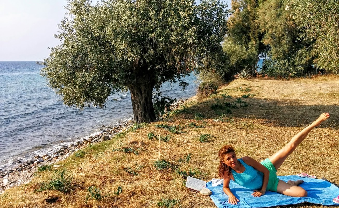 Printre maslinii batrani si intelepti, inspirand mirosul de iarba uscata si de apa sarata, mi-a trecut prin minte un gand: acela ca, peste 15 ani, voi fi intr-un loc asemanator, intr-o situatie asemanatoare, tot in compania lui Catalin, dar mai puternica fizic. Sper ca viata sa nu imi contrazica planul. In orice caz, eu sunt pregatita sa imbatranesc. Pentru asta fac miscare zilnic si invat impacarea cu mine si cu restul: pentru ca batranetea sa fie ceva asumat, iar eu nu doar sa ii fac fata, dar sa ma si bucur de ea!