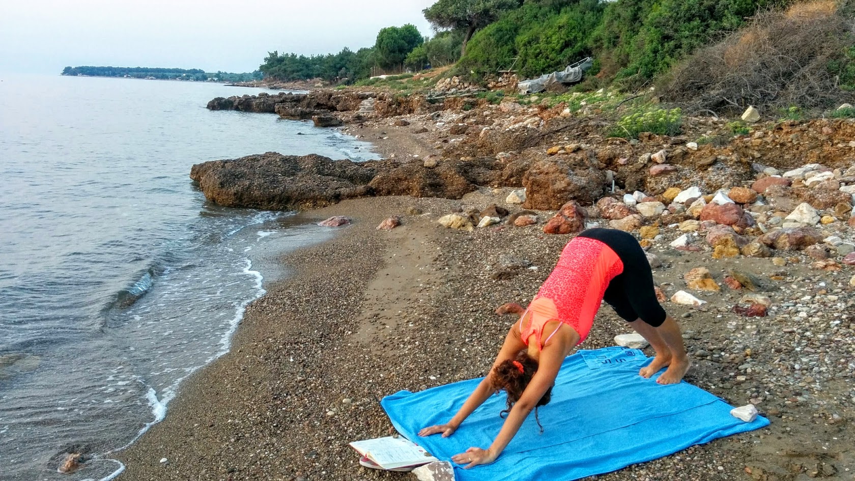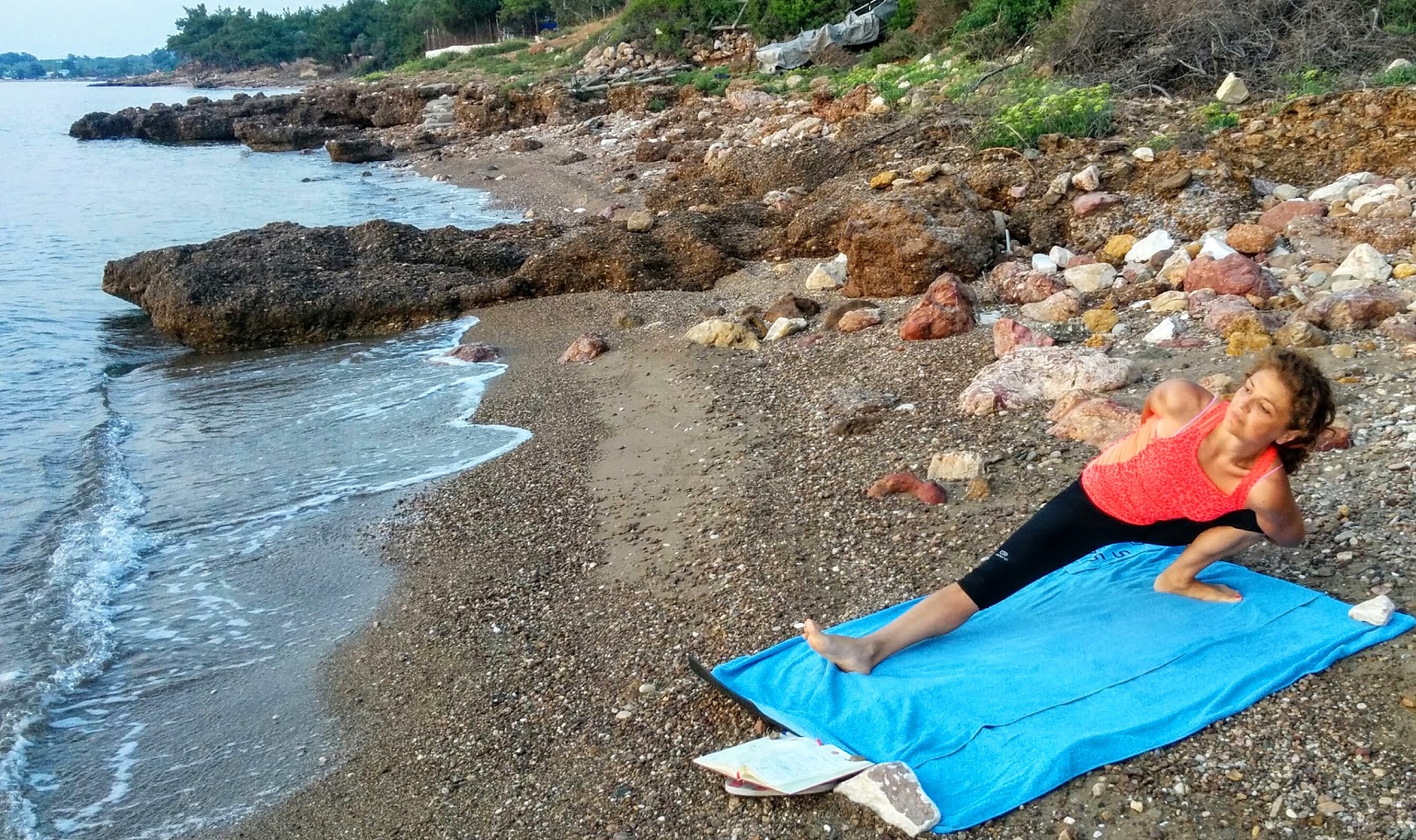 Te invit, asadar, intr-o noua locatie din Thassos, dar tot pe o plaja linistita, sub razele blande ale soarelui, aproape adormit, sa efectuam impreuna cateva exercitii de stretching.