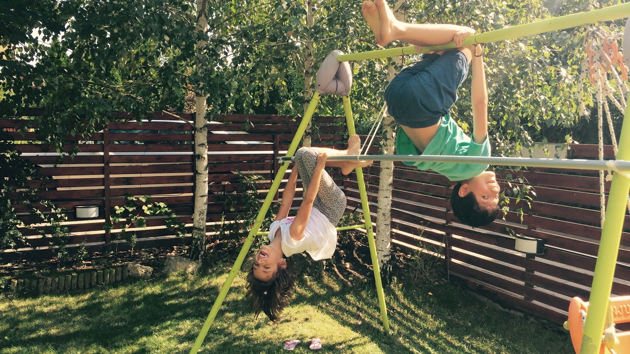 Gia si Eva nu sunt definitia competitivitatii, a ambitiei sau a vreunor teluri inalte si bine conturate. Isi traiesc viata lor de copii si recunosc ca, de multe ori, se misca fiindca le imping (mai ales) eu sa o faca (si la asta, sunt neobosita!). Caut mereu cate o motivatie pentru ele, ori chiar cate o mica amenintare, de genul: fara tv sau internet, daca nu va miscati! Vara e bine, caci mai zburda pe-afara, fac plimbari lungi, bat mingea, se dau cu rolele, cu bicicleta, trotineta, inoata, fac tractiuni si rotiri la bara din spatele curtii, adaptata special pentru ele, de Bunicu’.