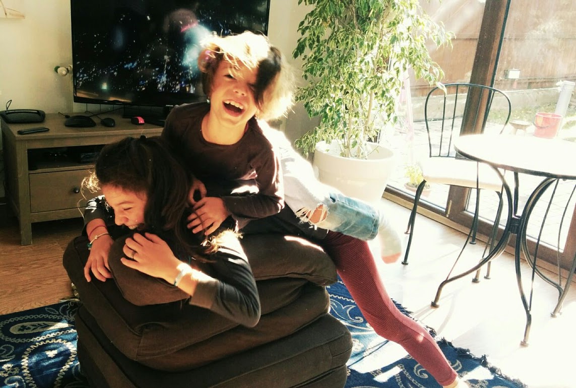Iarna, insa, e mai greu cu miscarea pe-afara, iar eu incerc sa gasesc modalitati sa le fac sa se miste, macar dimineata, la prima ora: le pun sa urce scari, sa faca flotari, genuflexiuni, fandari, sarituri, yoga…Eva se mai plange si zice, pe buna dreptate, ca si joaca/zbenguiala e o forma de sport. 🙂
