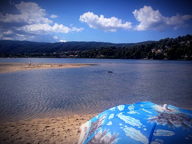 In Sithonia, undeva, intre Ormos Panagias si Vourvouru, unde ne-am cazat anul asta, respiri pace si tihna: apa marii spala picioarele musteriilor din taverne, rate imabatate de caldura alearga pe nisip, fugarite de copii, cate o pisica dungata se tavaleste la umbra vreunui palmier urias, in aer pluteste miros de caracatita coapta si de condimente, iar muzica greceasca te invita sa lenevesti absent, in timp ce barcute mici sau iahturi luxoase se leagana lasciv la tarm. Plaje sunt la tot pasul, de obicei cu nisip, mai pietricios ori foarte fin, iar copiii se pot juca pana la brau in apa, caci apa marii nu e adanca deloc pe zeci de metri.